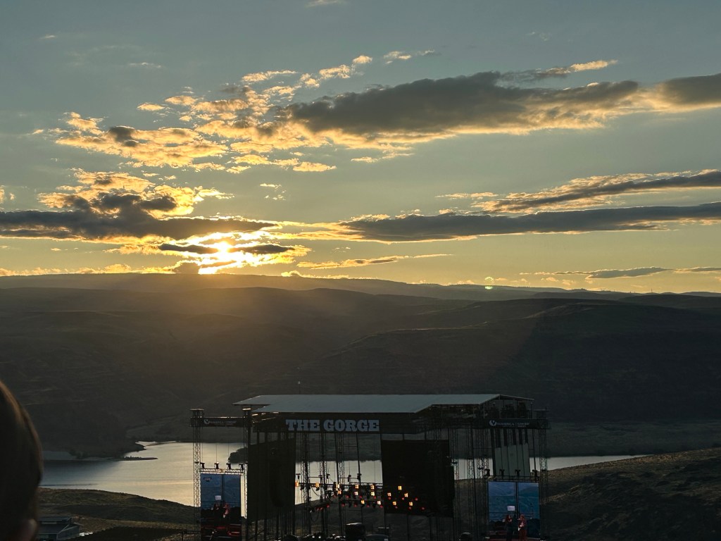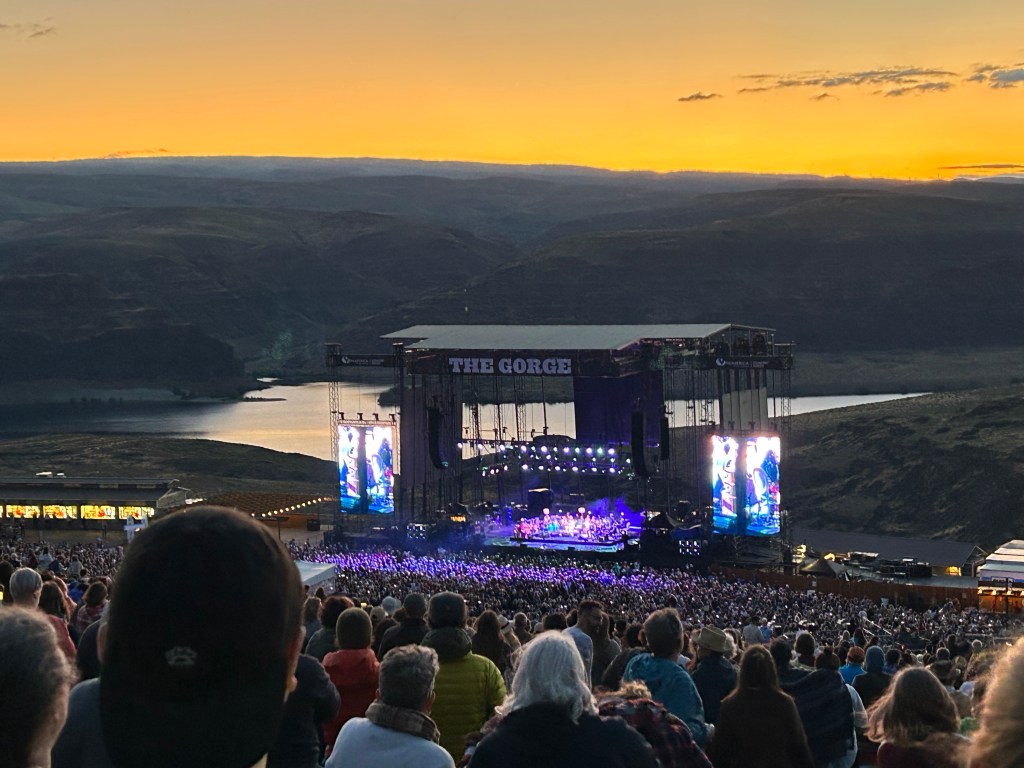 Channeling you, I rested this past Saturday in the late afternoon on the top rim of the steeply-raked lawn of The Gorge Amphitheatre and drank deeply of River. Air. Rock. Romance. All at their most rarefied. Years and years I had yearned to be in this sublime space, hearing tell of its singularity as a venue. But it’s no mere means for musicking. The moment I crested the ridge and looked down beyond the lawn, I admitted to my two companions that I’d quite happily have paid the price for these Echoes of the Canyon tickets just to have my breath taken from me as I watched the sun set and the skies darken over this vista for the next seven hours—that there would be, in the bargain, perhaps the greatest concert experience of my life felt in this moment like overkill, like spreading Betty Crocker vanilla butter cream frosting on my Oreos (you shut up!), like all my categories of sense-making were bursting with the frothy spray of stupor. Sublime. Sublime. Sublime, I insist. I looked. I drank. In the place, in the moment, I stayed.